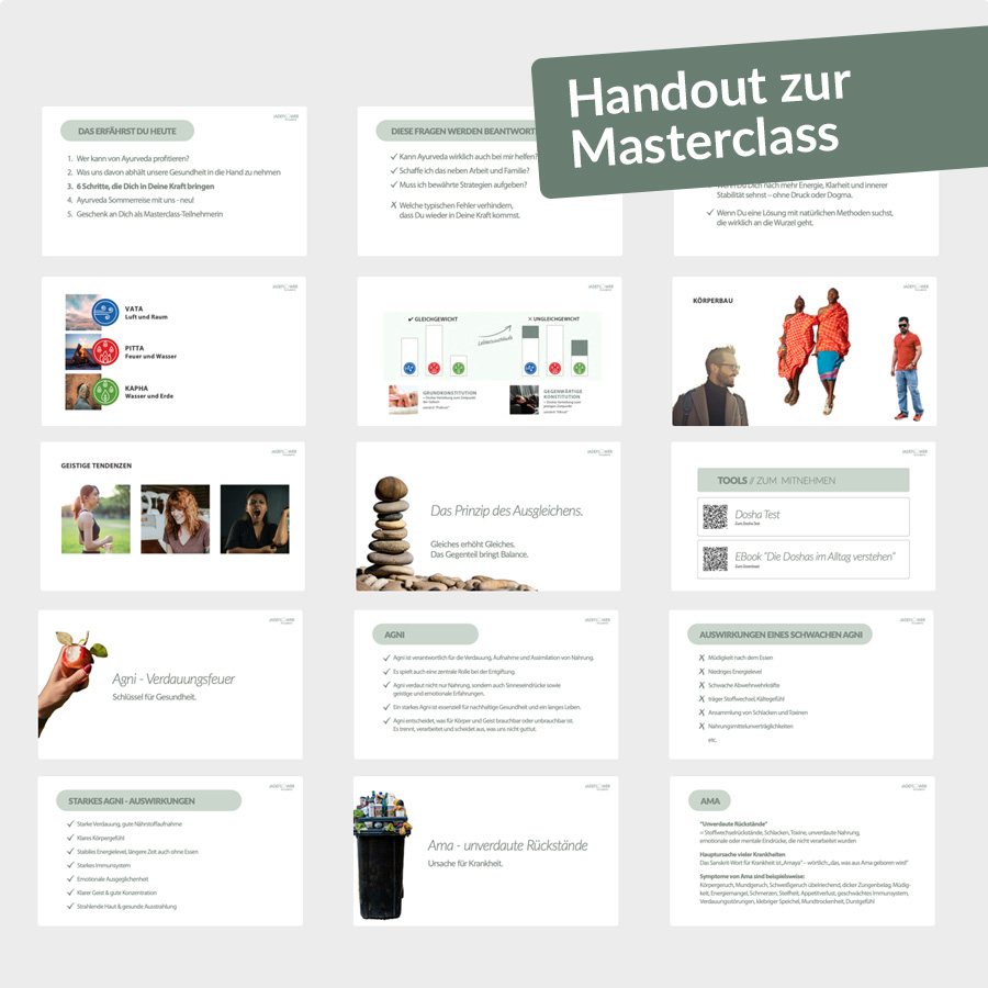 - Masterclass „6 Schritte mit Ayurveda für mehr Energie“ – im Wert von €22